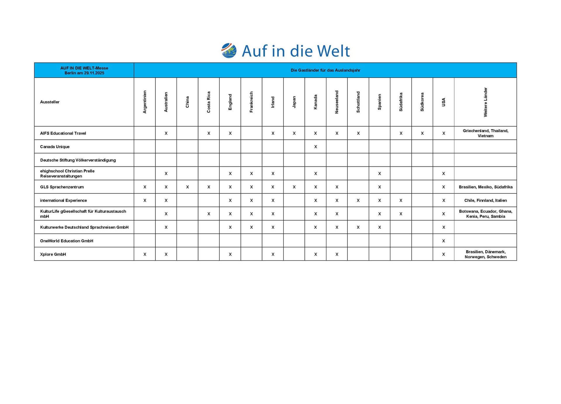 AUF IN DIE WELT Messe - Die Schüleraustausch-Messe - in Berlin