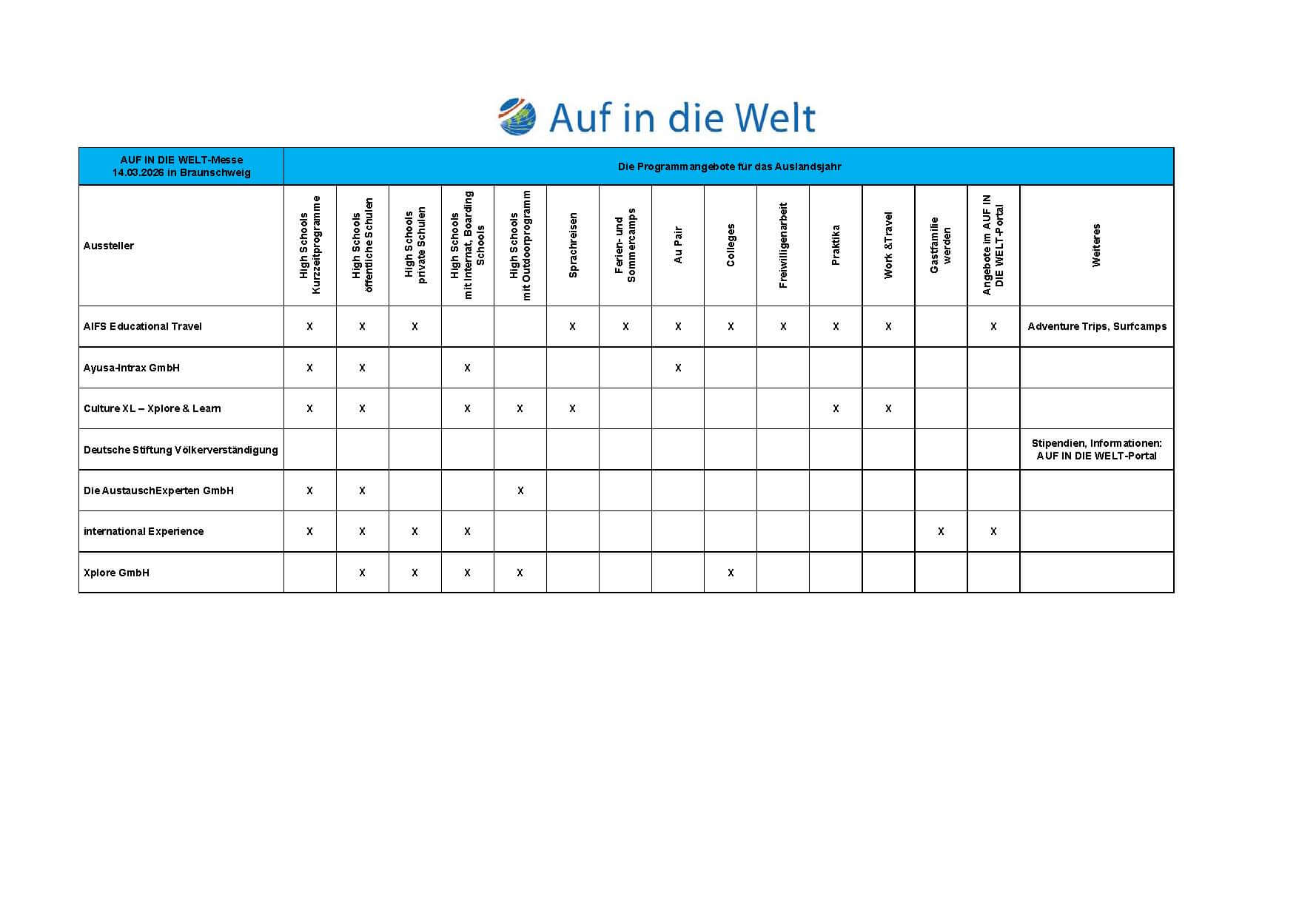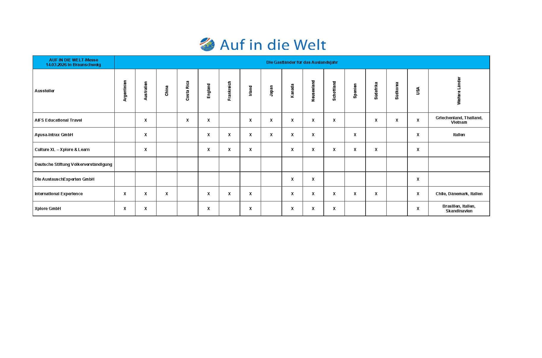 AUF IN DIE WELT Messe - Die Schüleraustausch-Messe - in Braunschweig