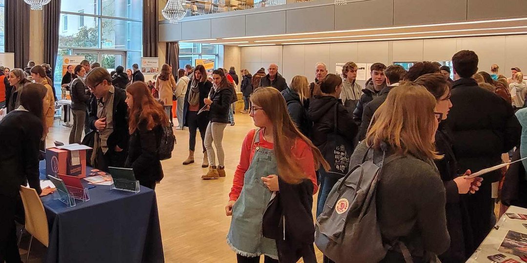 Von Beginn an und den ganzen Tag ließen sich die Besucherinnen und Besucher über die Angebote und alles Wichtige zu Auslandsaufenthalten informieren. Das Interesse reichte vom Schüleraustausch über Sprachreisen, Freiwilligendienste bis zu Work and Travel, Auslandsstudium und zur Finanzierung von Auslandsaufenthalten. Die Deutsche Stiftung Völkerverständigung informierte die AUF IN DIE WELT-Stipendien und weitere Fördermöglichkeiten.