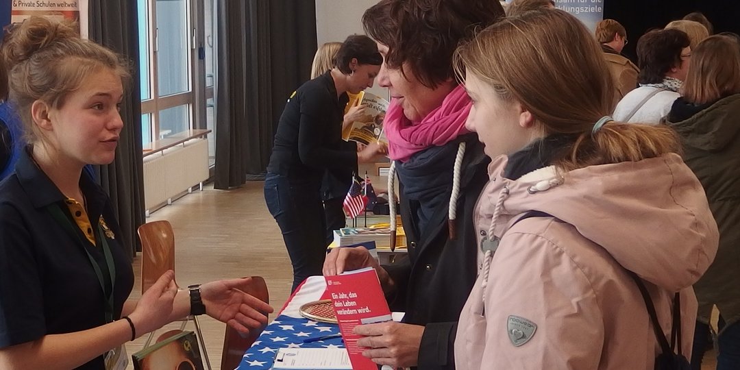 Von Beginn anließen sich die Besucher den ganzen Tag über an den Ständen und in den Vorträgen über die Angebote und alles Wichtige zu Auslandsaufenthalten informieren. Das Interesse reichte vom Schüleraustausch über Sprachreisen, Freiwilligendienste bis zu Work and Travel, Auslandsstudium und Stipendien. Die Deutsche Stiftung Völkerverständigung informierte die Familien über die Austausch-Stipendien und weitere Fördermöglichkeiten.