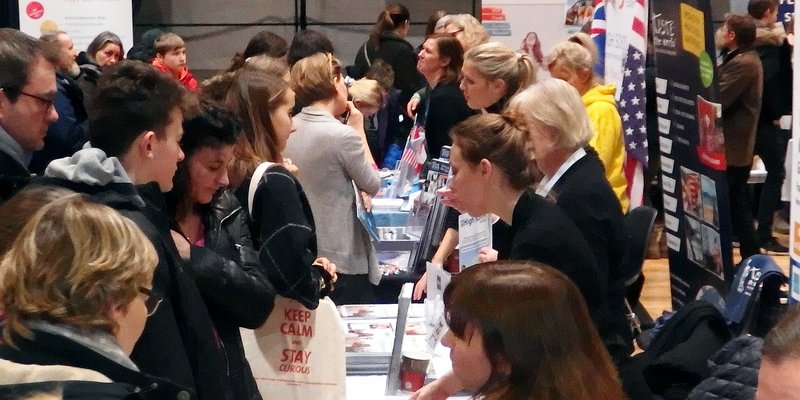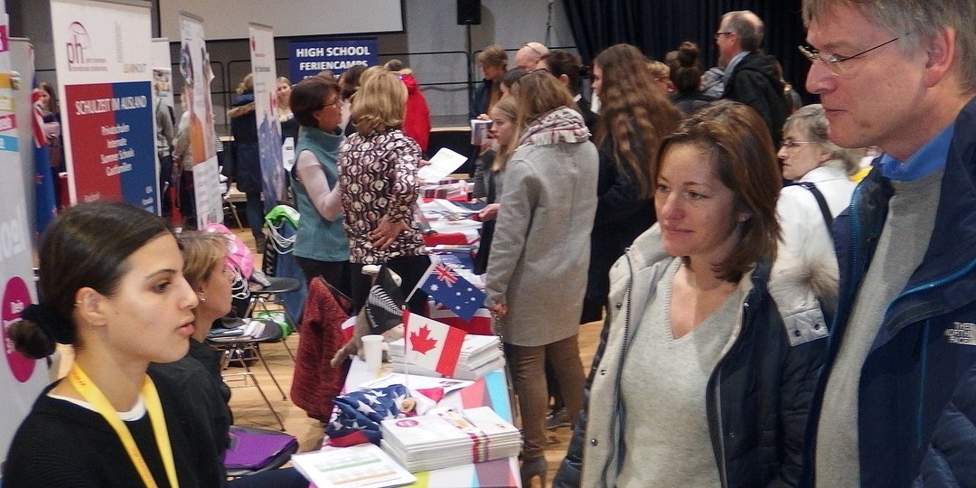 Von Beginn anließen sich die Besucher den ganzen Tag über an den Ständen und in den Vorträgen über die Angebote und alles Wichtige zu Auslandsaufenthalten informieren. Das Interesse reichte vom Schüleraustausch über Sprachreisen, Freiwilligendienste bis zu Work and Travel, Auslandsstudium und Stipendien. Das Amerikazentrum konnte viele Fragen zu USA-Aufenthalten beantworten. Die Deutsche Stiftung Völkerverständigung informierte die Familien über die Austausch-Stipendien und weitere Fördermöglichkeiten.