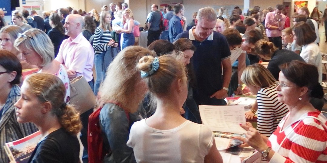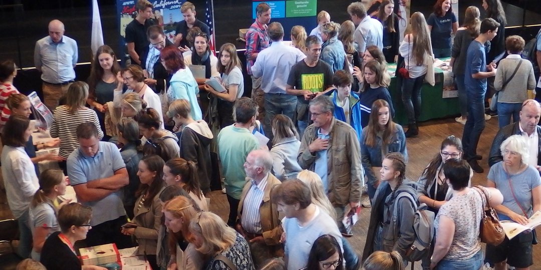 Vom Beginn an ließen sich die Besucher den ganzen Tag über an den Ständen und in den Vorträgen über die Angebote und alles Wichtige zu Auslandsaufenthalten informieren. Das Interesse reichte vom Schüleraustausch über Sprachreisen, Freiwilligendienste bis zu Work and Travel, Auslandsstudium und Stipendien. Die Deutsche Stiftung Völkerverständigung informierte viele Familien über die Austausch-Stipendien und weitere Fördermöglichkeiten.
