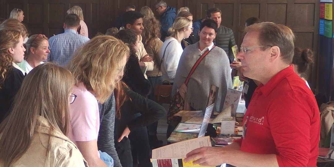 Von Beginn an ließen sich die Besucher den ganzen Tag über an den Ständen und in den Vorträgen über die Angebote und alles Wichtige zu Auslandsaufenthalten informieren. Das Interesse reichte vom Schüleraustausch über Sprachreisen, Freiwilligendienste bis zu Work and Travel, Auslandsstudium und Stipendien. Die Deutsche Stiftung Völkerverständigung informierte viele Familien über die Austausch-Stipendien und weitere Fördermöglichkeiten. Dir Botschaft von Kanada war ebenfalls vor Ort und hatte vielen Interessierten detaillierte Auskünfte zu Kanada-Aufenthalten zu geben.