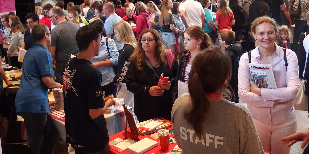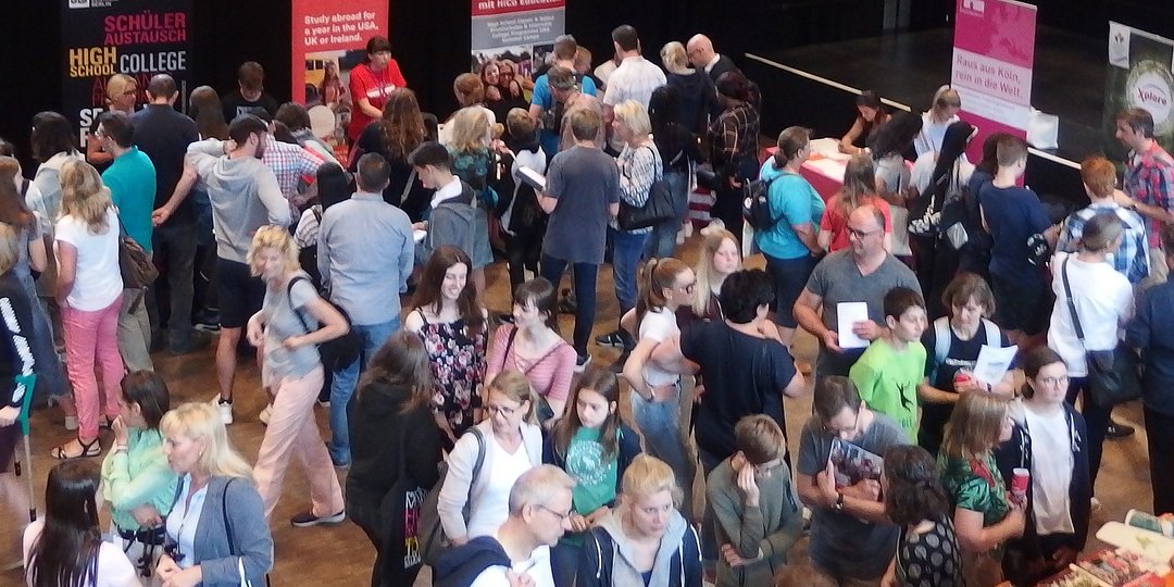 Von Beginn anließen sich die Besucher den ganzen Tag über an den Ständen und in den Vorträgen über die Angebote und alles Wichtige zu Auslandsaufenthalten informieren. Das Interesse reichte vom Schüleraustausch über Sprachreisen, Freiwilligendienste bis zu Work and Travel, Auslandsstudium und die Finanzierung von Auslandsaufenthalten. Die Deutsche Stiftung Völkerverständigung informierte die Familien über die Austausch-Stipendien und weitere Fördermöglichkeiten.