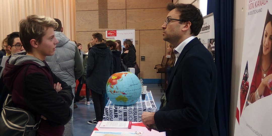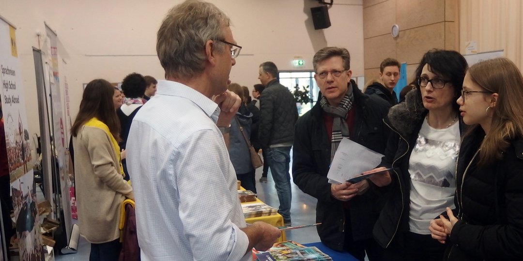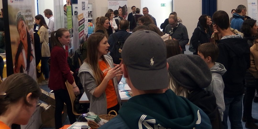 Von Beginn anließen sich die Besucher den ganzen Tag über an den Ständen und in den Vorträgen über die Angebote und alles Wichtige zu Auslandsaufenthalten informieren. Das Interesse reichte vom Schüleraustausch über Sprachreisen, Freiwilligendienste bis zu Work and Travel, Auslandsstudium und die Finanzierung von Auslandsaufenthalten. Die Botschaft von Kanada hatte viele Fragen zu High School und Gap Year-Aufenthalten zu beantworten. Die Deutsche Stiftung Völkerverständigung informierte die Familien über die Austausch-Stipendien und weitere Fördermöglichkeiten.