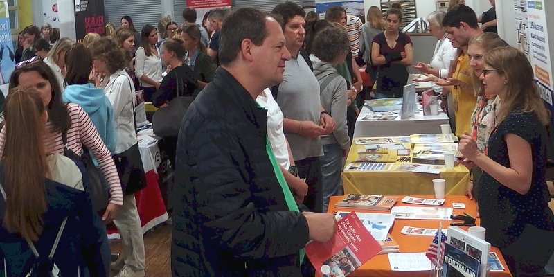 Von Beginn anließen sich die Besucher den ganzen Tag über an den Ständen und in den Vorträgen über die Angebote und alles Wichtige zu Auslandsaufenthalten informieren. Das Interesse reichte vom Schüleraustausch über Sprachreisen, Freiwilligendienste bis zu Work and Travel, Auslandsstudium und die Finanzierung von Auslandsaufenthalten. Das Amerikazentrum konnte viel Interesse an USA-Aufenthalten registrieren. Die Deutsche Stiftung Völkerverständigung informierte die Familien über die Austausch-Stipendien und weitere Fördermöglichkeiten.