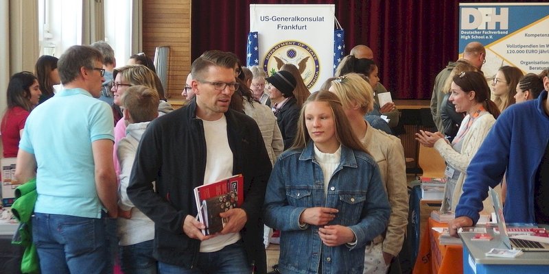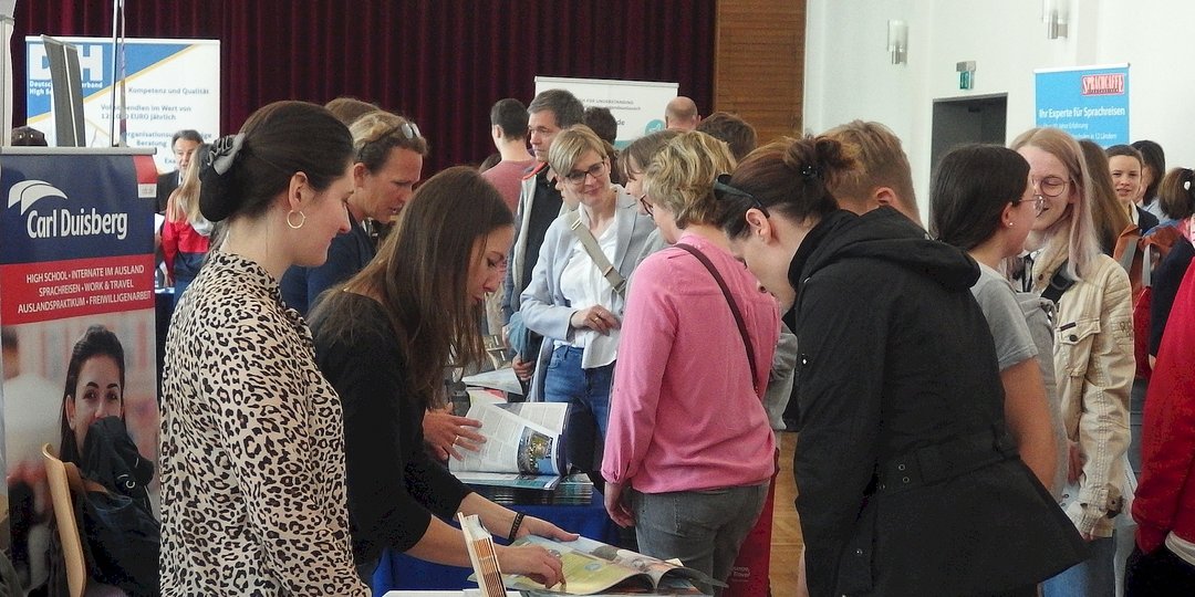 Von Beginn anließen sich die Besucher den ganzen Tag über an den Ständen und in den Vorträgen über die Angebote und alles Wichtige zu Auslandsaufenthalten informieren. Das Interesse reichte vom Schüleraustausch über Sprachreisen, Freiwilligendienste bis zu Work and Travel, Auslandsstudium und die Finanzierung von Auslandsaufenthalten. Die Deutsche Stiftung Völkerverständigung informierte die Familien über die Austausch-Stipendien und weitere Fördermöglichkeiten.