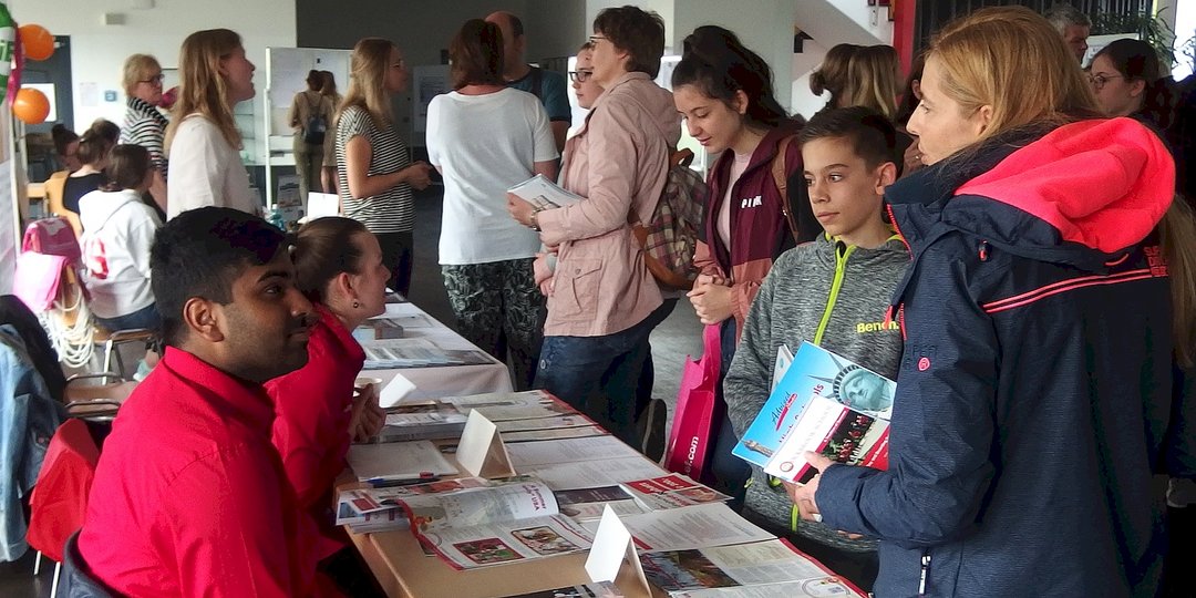 Von Beginn anließen sich die Besucher den ganzen Tag über an den Ständen und in den Vorträgen über die Angebote und alles Wichtige zu Auslandsaufenthalten informieren. Das Interesse reichte vom Schüleraustausch über Sprachreisen, Freiwilligendienste bis zu Work and Travel, Auslandsstudium und die Finanzierung von Auslandsaufenthalten. Die Deutsche Stiftung Völkerverständigung informierte die Familien über die Austausch-Stipendien und weitere Fördermöglichkeiten.