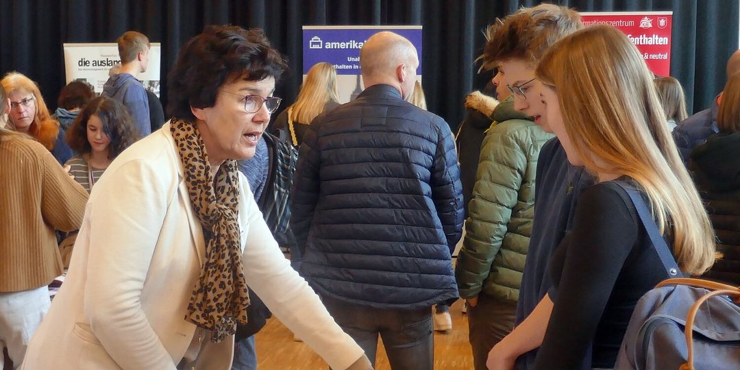 Stadträtin Gabriele Neff eröffnete die Messe im Namen der Stadt München. Von Beginn an ließen sich die Besucher den ganzen Tag über an den Ständen und in den Vorträgen über die Angebote und alles Wichtige zu Auslandsaufenthalten informieren. Das Interesse reichte vom Schüleraustausch über Sprachreisen, Freiwilligendienste bis zu Work and Travel, Auslandsstudium und zur Finanzierung von Auslandsaufenthalten. Die Deutsche Stiftung Völkerverständigung informierte die Familien über die Austausch-Stipendien und weitere Fördermöglichkeiten.