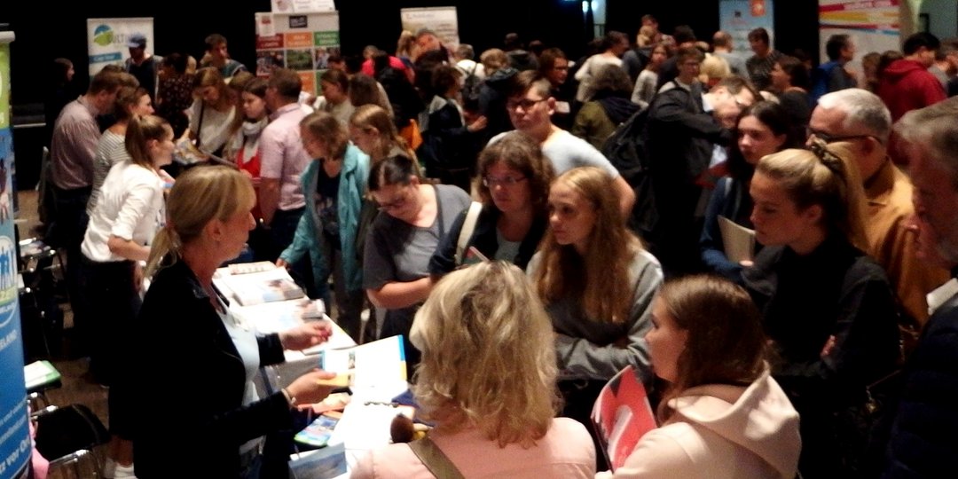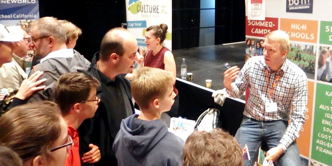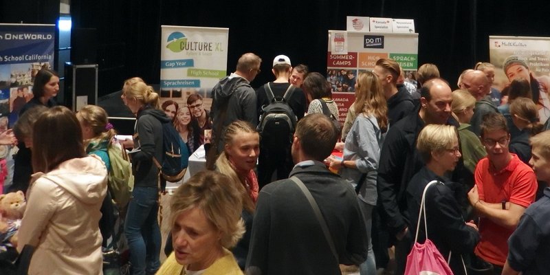 Von Beginn anließen sich die Besucher den ganzen Tag über an den Ständen und in den Vorträgen über die Angebote und alles Wichtige zu Auslandsaufenthalten informieren. Das Interesse reichte vom Schüleraustausch über Sprachreisen, Freiwilligendienste bis zu Work and Travel, Auslandsstudium und die Finanzierung von Auslandsaufenthalten. Die Deutsche Stiftung Völkerverständigung informierte die Familien über die Austausch-Stipendien und weitere Fördermöglichkeiten.