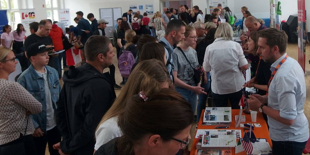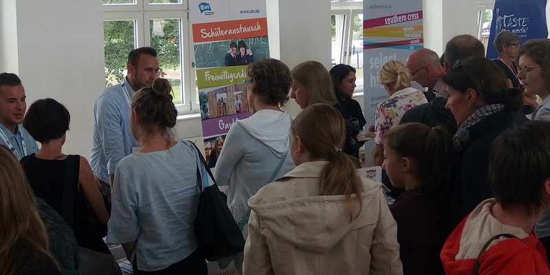 Von Beginn anließen sich die Besucher den ganzen Tag über an den Ständen und in den Vorträgen über die Angebote und alles Wichtige zu Auslandsaufenthalten informieren. Das Interesse reichte vom Schüleraustausch über Sprachreisen, Freiwilligendienste bis zu Work and Travel, Auslandsstudium und die Finanzierung von Auslandsaufenthalten. Die Deutsche Stiftung Völkerverständigung informierte die Familien über die Austausch-Stipendien und weitere Fördermöglichkeiten.