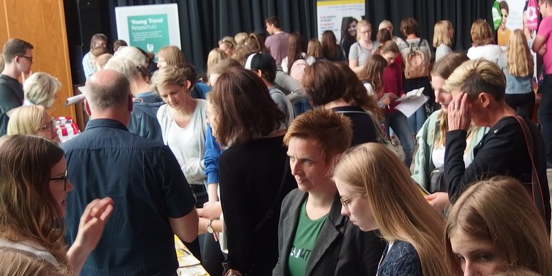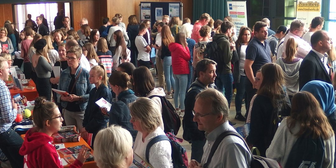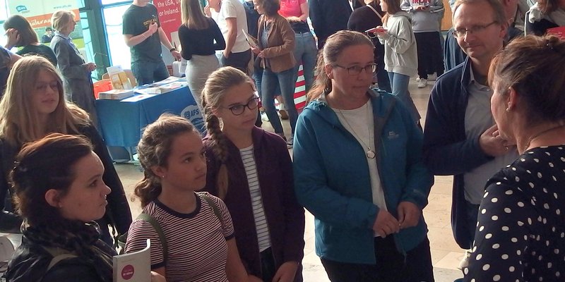 Von Beginn an ließen sich die Besucher den ganzen Tag über an den Ständen und in den Vorträgen über die Angebote und alles Wichtige zu Auslandsaufenthalten informieren. Das Interesse reichte vom Schüleraustausch über Sprachreisen, Freiwilligendienste bis zu Work and Travel, Auslandsstudium und die Finanzierung von Auslandsaufenthalten. Die Deutsche Stiftung Völkerverständigung informierte die Familien über die Austausch-Stipendien und weitere Fördermöglichkeiten.
