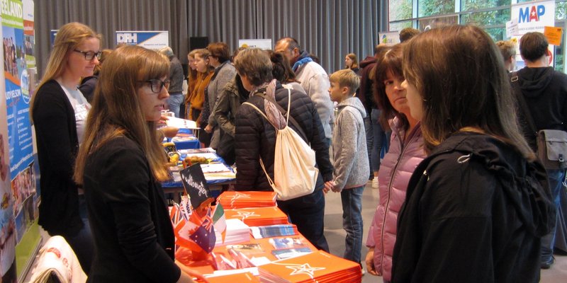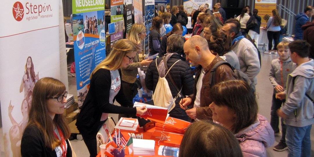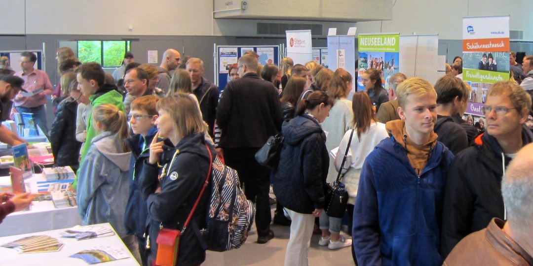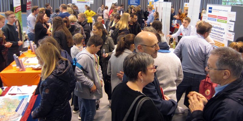 Von Beginn an ließen sich die Besucher den ganzen Tag über an den Ständen und in den Vorträgen über die Angebote und alles Wichtige zu Auslandsaufenthalten informieren. Das Interesse reichte vom Schüleraustausch über Sprachreisen, Freiwilligendienste bis zu Work and Travel, Auslandsstudium und zur Finanzierung von Auslandsaufenthalten. Die Deutsche Stiftung Völkerverständigung informierte die Familien über die Austausch-Stipendien und weitere Fördermöglichkeiten.