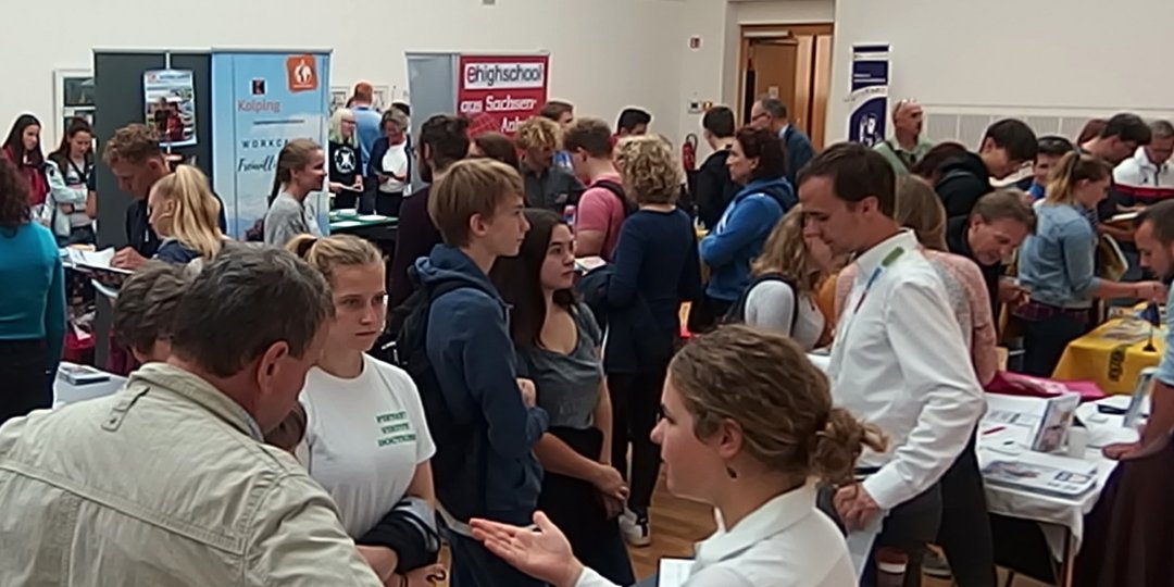 Von Beginn anließen sich die Besucher den ganzen Tag über an den Ständen und in den Vorträgen über die Angebote und alles Wichtige zu Auslandsaufenthalten informieren. Das Interesse reichte vom Schüleraustausch über Sprachreisen, Freiwilligendienste bis zu Work and Travel, Auslandsstudium und die Finanzierung von Auslandsaufenthalten. Die Deutsche Stiftung Völkerverständigung informierte die Familien über die Austausch-Stipendien und weitere Fördermöglichkeiten.