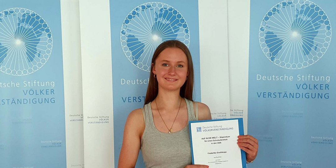 Ob USA, Kanada oder Neuseeland – ein Schuljahr im Ausland ist bei jungen Leuten begehrt. Das Auslandsjahr ist allerdings mit erheblichen Kosten verbunden. Die Deutsche Stiftung Völkerverständigung vergibt Stipendien für den Schüleraustausch. Die Stipendiaten für das Schuljahr 2023 / 2024 haben jetzt ihre Urkunden erhalten. Ein Stipendium geht an Frederika Grothkopp aus Buchholz in der Nordheide.