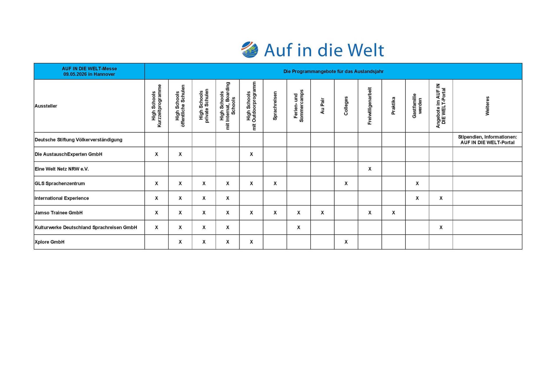 Die Aussteller dieser AUF IN DIE WELT-Messe