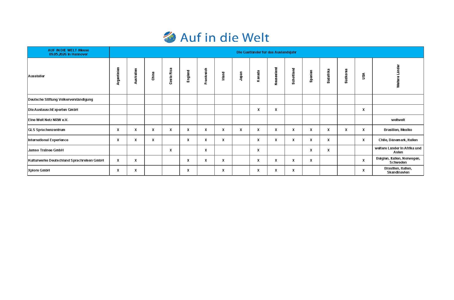 Die nächsten AUF IN DIE WELT-Messen in Hannover